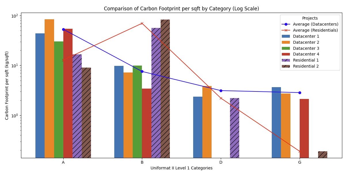 Built on UniformatBridge, ASTM Uniformat classification is utilized to analyze embodied carbon emisions aligned with schedule activities. Comparing with commercial residential building construction, the result paves a way toward sustainable data center construction operations.